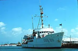 Peirce was built a cost of $2,300,000 (USD) as a "coastal survey ship" (CSS) for the U.S. Coast and Geodetic Survey by the Marietta Manufacturing Company at Point Pleasant, West Virginia.[1] She was launched in October 1962 and delivered in May 1963.[2][3] The Coast and Geodetic Survey commissioned her on 6 May 1963[4] at the Alabama State Docks in Mobile, Alabama,[4] as USC&GS Peirce (CSS 28),[2][3][5] the first and only Coast and Geodetic Survey ship of the name. When the Coast and Geodetic Survey and other United States Government agencies merged to form NOAA on 3 October 1970, Peirce became a part of the NOAA fleet as NOAAS Peirce (S 328), thus far the only NOAA ship to bear the name.