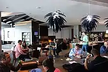 The main terminal building contains a combined check-in hall for domestic and international flights. It has 58 check-in counters, in addition to self-service check-in kiosks. A common baggage claim hall is also located on the ground floor.[36] There is a large retail area on the first floor, with many food and retail outlets as well as waiting areas. A major feature of the terminal is a $15 million state-of-the-art baggage handling system, which is 750 metres long.[37]