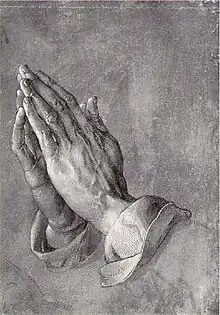 The play finds its origin in Beckett’s fascination with Albrecht Dürer's famous etching of praying hands, a reproduction of which had hung in his room at Cooldrinagh as a child, however "the dark, empty room with its rectangle of light and its black-coated figure hunched over the table, resembled a schematised seventeenth century Dutch painting even more explicitly than Ohio Impromptu.".[6]
