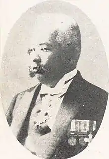 Nagao Ariga also spelled Nagao Aruga (有賀 長雄, 13 November 1860 – 17 June 1921) was a Japanese legal expert during the Meiji period. In addition to law, he also studied sociology at Tokyo Imperial University.[1] During the Sino-Japanese war, he advised Field-Marshall Ōyama Iwao on issues of international law.[2] In 1913 he accepted the invitation by Yuan Shikai, to prepare a draft constitution for the new Chinese republic, together with Ushikichi Nakae (中江 丑吉). Ariga doubted that China was ready to implement a liberal democracy and recommended a balance between monarchy and republic.[3]