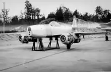 The Nakajima Kikka (橘花, "tachibana orange blossom"), initially designated Kōkoku Nigō Heiki (皇国二号兵器, "Imperial Weapon No. 2"), was Japan's first turbojet-powered aircraft. It was developed late in World War II, and the single completed prototype flew only once before the end of the conflict.