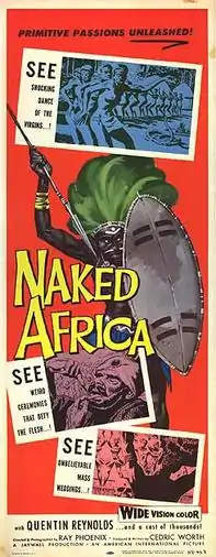 Naked Africa is a 1957 American documentary film about Africa released under the pretense of being an educational ethnographic film. It was released on a double bill with White Huntress.[1] The film was later re-rereleased under the title Mondo Africana to exploit the shockumentaries Mondo Cane and Africa Addio.