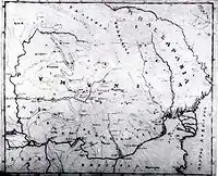 - ↑ The first known mention of the term "Romania" in its modern denotation dates from 1816, as the Greek scholar Dimitrie Daniel Philippide published in Leipzig his work "The History of Romania", followed by "The Geography of Romania". On the tombstone of Gheorghe Lazăr in Avrig (built in 1823) there is the inscription: "Precum Hristos pe Lazăr din morți a înviat/Așa tu România din somn ai deșteptat."