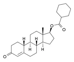 Nandrolone cyclohexanecarboxylate (brand names Nor-Durandron, Norlongandron; former developmental code name NSC-3351), or nandrolone hexahydrobenzoate, also known as 19-nortestosterone 17β-cyclohexanecarboxylate, is a synthetic androgen and anabolic steroid and a nandrolone ester that has been marketed by Ferring Pharmaceuticals since at least 1961.[1][2][3][4][5]