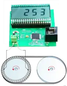 The term "self-powered sensors" may reflect far beyond a simple voltage-output signal. It can refer to a system that powers all the electronics responsible for measuring and demonstrating detectable movement. For example, the self-powered triboelectric encoder, integrated into a smart belt-pulley system, converts friction into useful electrical energy by storing the harvested energy in a capacitor and fully powering the circuit, which includes a microcontroller and an LCD.[57]