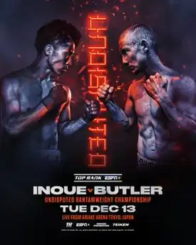 Naoya Inoue vs. Paul Butler, billed as Undisputed, was a bantamweight unification professional boxing match contested between WBA (Super), WBC, IBF, and The Ring champion, Naoya Inoue, and WBO champion, Paul Butler. Inoue knocked out Butler and became the undisputed bantamweight champion and the first since Enrique Pinder beat Rafael Herrera in 1972. The bout took place on 13 December 2022, at Ariake Arena in Tokyo, Japan.[1][2]