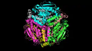 ![]() 1,4-Dihydroxy-2-naphthoyl-CoA synthase hexamer, Mycobacterium tuberculosis | |||||||||