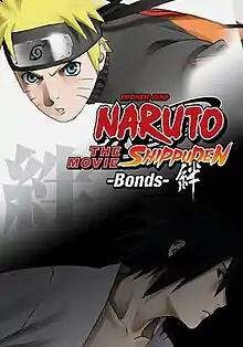 Naruto Shippuden the Movie: Bonds (Japanese: 劇場版 NARUTOナルト 疾風伝 絆, Hepburn: Gekijōban Naruto Shippūden: Kizuna)[1] is a 2008 Japanese animated film based on Masashi Kishimoto's manga and anime series. Released on August 2, 2008, it was announced in Weekly Shōnen Jump along with the DVD release date for the first Shippuden film. The trailer for the second film aired with episodes 40 and 41, and again with episode 66 and 67. In episodes 70 and 73 the opening sequence was replaced with footage from the film. Its English version was released on DVD and Blu-ray on October 25, 2011 in North America.[2] The film's theme song "No Rain No Rainbow" is performed by Home Made Kazoku. The movie is set after episode 71.