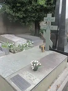In 1940, as Nathalie Majolier, her daughter published a book of family memoirs, Step-Daughter of Imperial Russia.[119] During World War II, Natalia and her daughter were separated as Natalia lived in Paris, and her daughter was in Britain. They were unable to communicate with each other until after the war, by which time Natalia was penniless and lived as a refugee in an attic box-room.[120] On 23 January 1952, she died of cancer at the Laënnec charity hospital in Paris in complete poverty, and was buried in Passy Cemetery (Section 9, near the intersection with the outer wall and Section 8) in Paris beside her son George, Count Brasov.[121]