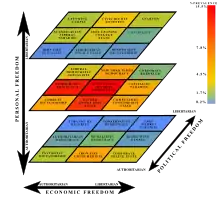 The gameplay is centered on the player deciding government policies through "issues". Issues are written by either Barry or by the players themselves with moderator editing[5] and are based on real-world politics with an "absurd and humorous direction".[12] The player may choose from a list of options or dismiss the issue, and the player's responses may affect the nation's status across three main statistics: political freedom, civil rights, and economy; based on these main statuses, the nation is assigned to one of twenty-seven government classifications[5] which are determined on a three-axis scale of personal, economic, and political freedom. Initially, the player received only one issue per day, but players now receive issues multiple times per day on timed intervals.[12]