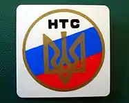 The organization adopted a logo of the Russian flag with the symbol of St. Vladimir, frequently used by Ukrainians, to demonstrate the continuity and interrelatedness of Russian and Ukrainian tradition. The trident was also used by NTS as a revolutionary symbol, called the "forks of the people's anger".