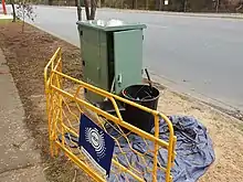 An NBN fibre-to-the-node cabinet, located near a distribution area pillar