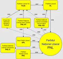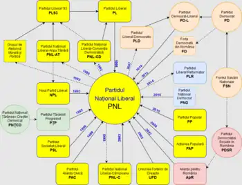 - ↑ "Tribunalul București dispune fuziunea PNL cu PDL. Noua formațiune, denumită PNL" (in Romanian). 6 October 2014.
