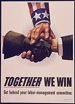 In early 1942, the board resolved the matter by putting into place a "maintenance of membership" arrangement, wherein existing union members had to remain union members, with union dues often paid via an automatic checkoff, but neither a closed shop nor a union shop was required and new employees were not obliged to become union members.[20] In June 1942 this was further refined by adding a fifteen-day escape period for new union members to drop their membership, although in practice few new workers would choose to do so.[44] The "maintenance of membership" scheme remained in place for the duration of the war, eventually covering around three million workers,[20] and did much to contribute to the growth of unions during the period.[45]