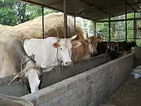 Cow is the national animal of Nepal. Cattle (colloquially cows) are the most common type of large domesticated ungulates. They are a prominent modern member of the subfamily Bovinae, are the most widespread species of the genus Bos, and are most commonly classified collectively as Bos primigenius. Cows are not raised as livestock for meat (beef and veal), but as dairy animals for milk and other dairy products, and as draft animals (oxen or bullocks) (pulling carts, plows and the like). The national breed Achham cattle which falls in the Bos indicus species is understood to be the national animal.