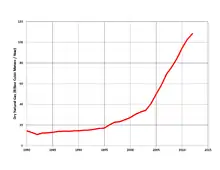 Considering China's immense demand for energy, gas plays a relatively small role in its energy use, with only 5% of total energy in 2012.[3] However, Chinese authorities see natural gas as a lower-polluting and less carbon-intensive alternative to coal, and gas consumption is increasing rapidly. Natural gas is expected to supply 15% of the nation's energy supply by 2030.[4]