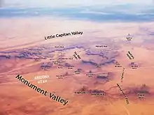 | Kayenta-Monument Valley Scenic Road | 27.7 miles | The scenic byway, along U.S. Route 163, passes by "unmissable monoliths" of Monument Valley, like Totem Pole, Three Sisters, and Merrick Butte.[3] | |