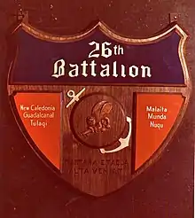 In August 1942 the future members of Naval Construction Battalion (NCB) 26 arrived at Camp Allen, Virginia.[1] In October they shipped out and on 20 December 1942, the twenty-seven officers and 968 men of NCB 26 arrived in the South Pacific participating in the Guadalcanal Campaign, relieving NCB 6 and moved into their camp at Henderson Field. The commanding officer was LCDR C. A. Frye and executive officer was LT H.H. Allen. Their mission was to complete projects necessary for driving the Japanese from the island of Guadalcanal. The Seabees at Naval Base Guadalcanal built gun mounts and emplacements, tunnels, 6,000 feet of railroad, multiple docks, over 35 miles of primary roadway, 10 bridges and two radio stations with 150-foot transmitter towers.[1] The tradesmen also completed salvage work on ships damaged by enemy attacks. While there the battalion had 187 air alerts and came under attack 68 times.