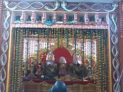 This temple is situated in Nayagarh around 1 km distance from Nayagarh town. Goddess Dakshinakli is the prime deity of Nayagarh. It is said She was taken by a great tantrik of the royal family of Nayagarh king once on his way from Khandpara to Nayagarh. While the royal kin was coming through a mango field at night, the deity appeared before him and since he was a great tantrik, he imprisoned the devi (goddess) and asked her to come with him as an aid till he reached Nayagarh as he was traveling alone. Goddess Dakshinakli came with the tantrik, but upon reaching Nayagarh when he asked Her now She can go, the goddess replied him as you have made me come here now give me shelter and I would not go back and even cursed him to be childless as She was the mother goddess and a son should not have done this even if he has great magical power. Since then the temple for Dakshin Kali was built on and the goddess has been worshipped.