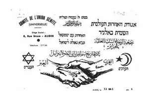 It was during this time, in the 1920s that the International League Against Anti-Semitism (LICA) was founded by Bernard Lecache.[64] Some Muslim reformers agreed with Lecache, among them Abdelhamid Ben Badis, Mohammed Salah Bendjelloul, and Sheikh Tayeb El-Okbi. Lecache believed in Arab-Jewish reconciliation against rising inter-communal tensions. El-Okbi would later say that "LICA is the true incarnation of the Islamic spirit. The Qur’an says that humans are born brothers and that Islam does not make a difference between races. True Muslims do not belittle other races. They are against hatred of people, injustice and inequality."[65] In 1939, Abder-Rahmane Fitrawe published Le racisme et l’Islam ("Racism and Islam") which sought to illustrate the threat of Nazism and Fascism by arguing that they went against the teachings of Islam.[66][67][68][69] Some of these Muslim intellectuals were criticized for allying with Jewish leaders and calling for Muslim-Jewish collaboration.[70]