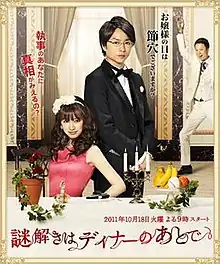 Nazotoki wa Dinner no Ato de (謎解きはディナーのあとで, The After-Dinner Mysteries[1]) is a Japanese television drama series based on the mystery novel of the same name by Japanese author Tokuya Higashigawa. It premiered on Fuji TV on October 18, 2011.[2] This drama series was subsequently followed two-hour long special episode,[3] then a film sequel.[4]