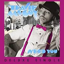 "Need You" is the second single released by American rapper Travie McCoy from his debut solo album, Lazarus. The song was produced by Lucas Secon and written by McCoy, Secon, Wayne Hector and Carsten Mortensen aka Mintman. The song maintained a peak of number six on the Bubbling Under Hot 100 Singles Chart. The music video for "Need You" was released on October 20, 2010 and was shot in Los Angeles.[1] The plot features McCoy wandering in Chinatown looking for his girlfriend.[2]