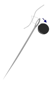 A needle threader is a device for helping to put thread through the eye of a needle. Many kinds exist, though a common type combines a short length of fine wire bent into a diamond shape, with one corner held by a piece of tinplate or plastic. The user passes the wire loop through the needle eye, passes the string through the wire loop, and finally pulls both the loop back through the needle by the handle, which pulls the thread through. The typical needle threader of this type has the image of a woman, possibly Ariadne, in profile stamped into the plate handle.[1][2]