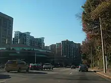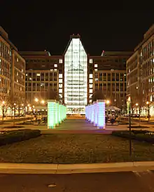 The Eisenhower Valley, along with the neighboring Carlyle development, in modern times has become a commercial corridor.[18] It is divided by the city into two areas; Eisenhower East is the more commercial area, including Carlyle, while the more industrial western end is known as Eisenhower West.[19] The Carlyle neighborhood is home to the United States Patent and Trademark Office, the National Inventors Hall of Fame, and the Albert V. Bryan U.S. Courthouse,[20] and a new home for the National Science Foundation is currently under construction.[21] Also under construction is a tower which will become, when completed, the tallest inside the Capital Beltway.[22] A large sports and entertainment complex was proposed for Hensley Park in 2013, but this was rejected by city planners.[23] The Transportation Security Administration announced plans to move its headquarters to the Victory Center (the former U.S. Army Materiel Command headquarters, built in 1973 and vacated in 2003), located in the west end of the Valley, in 2015, a move that was met with acclaim from city leaders, as it was planned that the building would become the centerpiece of an economic transformation of the neighborhood.[24] The move was put on hold by a federal judge, however, who accused the General Services Administration of ignoring its own rules in contracting the lease; the action has caused great unhappiness among local government circles.[25][26] In 2017, the TSA lease was awarded to the developer of a new building in Springfield, Virginia, officially ending the proposal for the TSA HQ to move to the Eisenhower Valley.