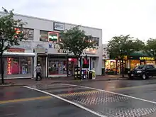 Arlandria is a neighborhood located in the north-eastern portion of Alexandria, adjacent to Del Ray.[76] Its name is a portmanteau of the words "Arlington" and "Alexandria," reflecting its location on the border of Arlington County and Alexandria. The neighborhood's borders form a rough triangle bounded by Four Mile Run in the north, West Glebe Road to the south and south-west, and Route 1 to the east.[77] Centered around Mount Vernon Avenue between Four Mile Run and West Glebe Road, it is home to many Hispanic, Thai, and Vietnamese-owned bakeries, restaurants, salons, and bookstores.[78] An influx of Salvadorean immigrants into the neighborhood in the 1980s has earned it the nickname "Chirilagua," after the city on the Pacific coast of El Salvador. More development began in 2000, when the park at Four Mile Run was expanded. The area has long been viewed as working-class; recent efforts to change its character have led to fears of gentrification on the part of some residents.[79] Arlandria is home to the Birchmere concert hall, the Alexandria Aces of the Cal Ripken Collegiate Baseball League, and St. Rita Roman Catholic Church, dedicated in 1949 and constructed in Gothic style from Virginia fieldstone and Indiana limestone.[80]