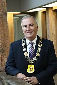 During the 2003 municipal elections in Ontario Ellis ran against Belleville's incumbent mayor Mary-Ann Sills, losing by only 202 votes.[5] Nevertheless, Ellis would run again in 2006, defeating Mary-Ann Sills to become mayor of Belleville. He would serve two terms as mayor, being reelected in 2006, and leaving office in 2014.[6] As mayor, Ellis guided city council through the Build Belleville initiative, which involved pursuing twenty-two infrastructure projects worth $91 million.[7] He was elected again in 2022, defeating incumbent mayor Mitch Panciuk.