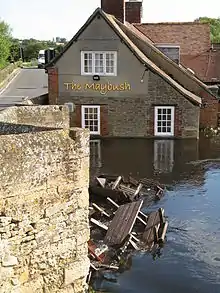 Whether Newbridge or Radcot Bridge is the oldest bridge today across the Thames is debatable – Radcot Bridge was built earlier but was extensively damaged during the Wars of the Roses and had to be greatly rebuilt; furthermore, Radcot Bridge no longer crosses the main channel of the river since local reroutings in 1787.[3] In 1644, in the Civil War, the Battle of Newbridge was fought on the banks of the river. Parliamentarian William Waller attempted to cross in order to surround Oxford and capture King Charles but was defeated.[5][6] In 2007 the area was flooded extensively.[7]