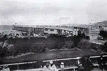 The first pier was built from timber. Construction began in 1891 and it was officially opened by the Governor of New Zealand, the Lord Glasgow, on 18 January 1894.[1] Other dignitaries who attended the opening included the Mayor of Christchurch (Walter Cooper), the Mayor of Linwood (J. R. Brunt), and two members of the House of Representatives (George John Smith and William Whitehouse Collins). It started raining just as the opening ceremony finished, and planned fireworks were postponed. The pier had been built to a length of 700 feet (210 m).[2][3] There were plans to build an octagonal end to the pier including a large building, but this was never carried out. Over time, the pier decayed. The city council ordered the pier to be demolished, and this was done during just four and a half hours in the early morning of 12 October 1965 on a receding tide.[1]
