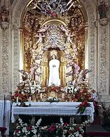 It preserves the first altarpiece in which Solomonic columns were used in Spain. It was assembled in 1664 as an act of atonement to house a canvas of the Immaculate Conception that had been outraged that same year when the face of the Virgin was slashed with a dagger by an opponent to the Dogma of the Immaculate Conception of Mary.