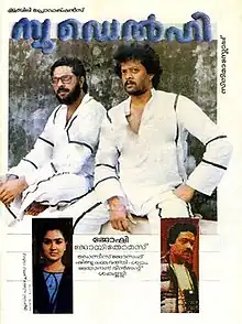 New Delhi is a 1987 Malayalam language neo-noir action thriller film written by Dennis Joseph and directed by Joshiy and produced by Joy Thomas. It stars Mammootty, Suresh Gopi, Thiagarajan, Sumalatha, Urvashi, Siddique, Vijayaraghavan, Mohan Jose, Devan, and Jagannatha Varma.[1]