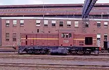 Locomotive 7201 was a diesel-hydraulic locomotive, with B-B wheel arrangement. Built in the Department of Railways Water Supply Workshops at Chullora, it performed its first light engine trial on 27 August 1965.[1] It was built on the lengthened underframe of an unused 58 class locomotive tender, but using the bogies from a Standard Goods locomotive[2] turret tender. The cab was similar to that of an X200 class and the livery was similar to a 48 class.