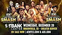 New Year's Smash is a two-part television special held around New Year's by All Elite Wrestling (AEW) since January 2021.[2] On October 18, 2022, AEW announced that the third New Year's Smash would return live on December 28 for Wednesday Night Dynamite on TBS and an episode of Friday Night Rampage that would air on tape delay on December 30 on TNT. The event took place at the 1stBank Center in Broomfield, Colorado.[3]