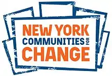 New York Communities for Change (NYCC) is a 501(c)(4) nonprofit focused on "building power for low and moderate-income communities in New York State".[1] Issues described on the organization's website include affordable housing, worker and immigrant rights, improving public education, Wall Street accountability, and green energy.[2]