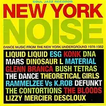 New York Noise is a 2003 compilation album released by Soul Jazz Records. The music of the album compiles features the genre-bending music from New York City released during the late '70s and early '80s, ranging from no wave to mutant disco to hip-hop to art funk among others. [1] On its release, it received positive reviews from AllMusic, Pitchfork Media and Rolling Stone. A new version of the album with several track re-arrangements was released in 2016.