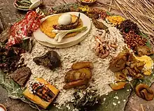 Food is the integral part of Newar culture. Different kind of foods are prepared for different occasions, considering the climate and nutritional needs for body. Newars are renowned for their sumptuous feasting.[2] Dishes served during feasts and festivals have symbolic significance.
