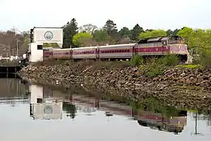 The Beverly Drawbridge spanning the Danvers River was replaced in 2017. The abutments of the approach spans were repaired, followed by a 21-day service shutdown from July 17 to August 13, 2017, for the complete replacement of the swing bridge section.[19][14] The MBTA Board approved the $16.2 million contract in February 2016; work will last from March 2016 to December 2017.[20] The line was shut down on weekends from July 8 through August 27, 2017, for the installation of Positive Train Control equipment in order to meet a 2020 federal deadline; four of those weekends overlapped with the already planned service curtailments for drawbridge work.[21][14]