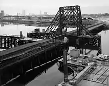 The Gloucester Drawbridge over the Annisquam River formerly consisted of a steel drawbridge and western approach span with a timber trestle for the eastern approach. It was built in 1911, modified in 1932, and substantially repaired in 1984–85. It was completely replaced with a modern box beam bridge on steel piles.[22] By February 2016, bidding was planned to begin by June for the four-year, then-$34 million project, though funding had not been allotted.[23] The MBTA Board approved a $56.9 million contract in October 2017; funding is split between federal and state funds. The 44-month project was to require 10 weekend shutdowns of the branch.[24] All service between West Gloucester and Rockport was replaced by buses from June 1 to 30, 2019 to allow for construction.[25]