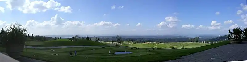 Newcastle is known for its 36-hole, 350-acre (140 ha) golf complex, which features two championship, 18-hole courses known as the Coal Creek and China Creek courses. Designed by golf course architect Robert E. Cupp in consultation with PGA Masters champion Fred Couples and in partnership with Oki Golf, the courses have views of Mount Rainier, Lake Washington, Lake Sammamish, the Olympic and Cascade mountain ranges, and the downtown skylines of the cities of Seattle and Bellevue. Practice and hospitality facilities include a heated driving range, a pro shop, an 18-hole mini-golf/putting range, private (pitching/putting/chipping) practice tees, and a 44,000-square-foot (4,100 m2) clubhouse with restaurants, pubs, and event spaces.[29]