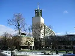 Newcastle Civic Centre is a municipal building in the Haymarket area of Newcastle upon Tyne, England.[1] Designed by George Kenyon,[2] the centre was built for Newcastle City Council in 1967 and formally opened by King Olav V of Norway on 14 November 1968.[3] It is a listed building with Grade II* status[4] and is the joint-eighth tallest building in the city, standing at a total of 200 feet (61 m).[5]
