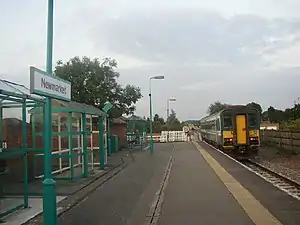 Following the Railways Act 1921 Newmarket station was operated by the London and North Eastern Railway from 1 January 1923. After nationalisation in 1948 the station was operated by the Eastern Region of British Railways from 1 January 1948. British Railways demolished the buildings on the up platform and a number on the down side in September 1965.[2] Although general goods traffic ceased in 1969 there was a grain terminal operated by the firm Dower Wood located north east of the station that received traffic until summer 1991. The station buildings at the "New Station" (52°14′16″N 0°24′21″E / 52.2377°N 0.4059°E) were sold, and the current station uses the east end of the down platform and is equipped with basic passenger shelters.