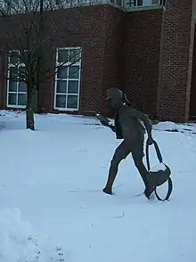 Statue of a young girl outside of the Newton Free Library