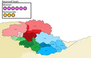 - ↑ Six seats are reserved for women, three seats are reserved for technocrats.