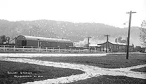 Ngāruawāhia railway station was at the junction of the North Island Main Trunk line and its Glen Massey branch, serving Ngāruawāhia in the Waikato District of New Zealand, 74 mi (119 km) south of Auckland and 10 mi (16 km) north of Hamilton.[2] It was opened with a special train from Auckland on Monday 13 August 1877.[3] The next stations were Taupiri 6.5 km (4.0 mi) to the north and Horotiu 5.5 km (3.4 mi) to the south.[4]