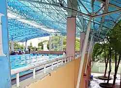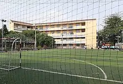 The school's gymnasium has an area of 800m2 and is used for physical education. There is also a parking lot in its basement. The swimming pool and soccer field are located next to the gymnasium.
