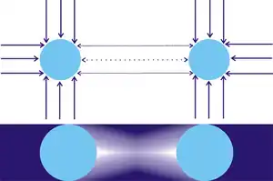 Fatio's account of his gravitational theory finally published in 1929, in an edition prepared by the German historian of mathematics Karl Bopp,[28] and then again independently in 1949 by Bernard Gagnebin, the conservator of manuscripts at the Geneva Library.[7][9] Even though the modern scientific consensus is that the Fatio-Le Sage theory is inviable as an account of gravity, the process that he described does give rise to an attractive inverse-square force between particles immersed in a rare medium at a higher temperature. George Gamow proposed in 1949 that such a "mock gravity" could have played a role in galaxy formation after the Big Bang.[33] A. M. Ignatov showed in 1996 that a similar process produces an attraction between dust grains in a dusty plasma.[34]