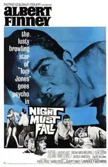 Night Must Fall is a 1964 remake of the 1937 film of the same name, which was in turn based on the 1935 play by Emlyn Williams. It was directed by Karel Reisz from a script by Clive Exton and starred Albert Finney, Mona Washbourne, and Susan Hampshire, but was not as successful as the original film. The film was entered into the 14th Berlin International Film Festival.[1]